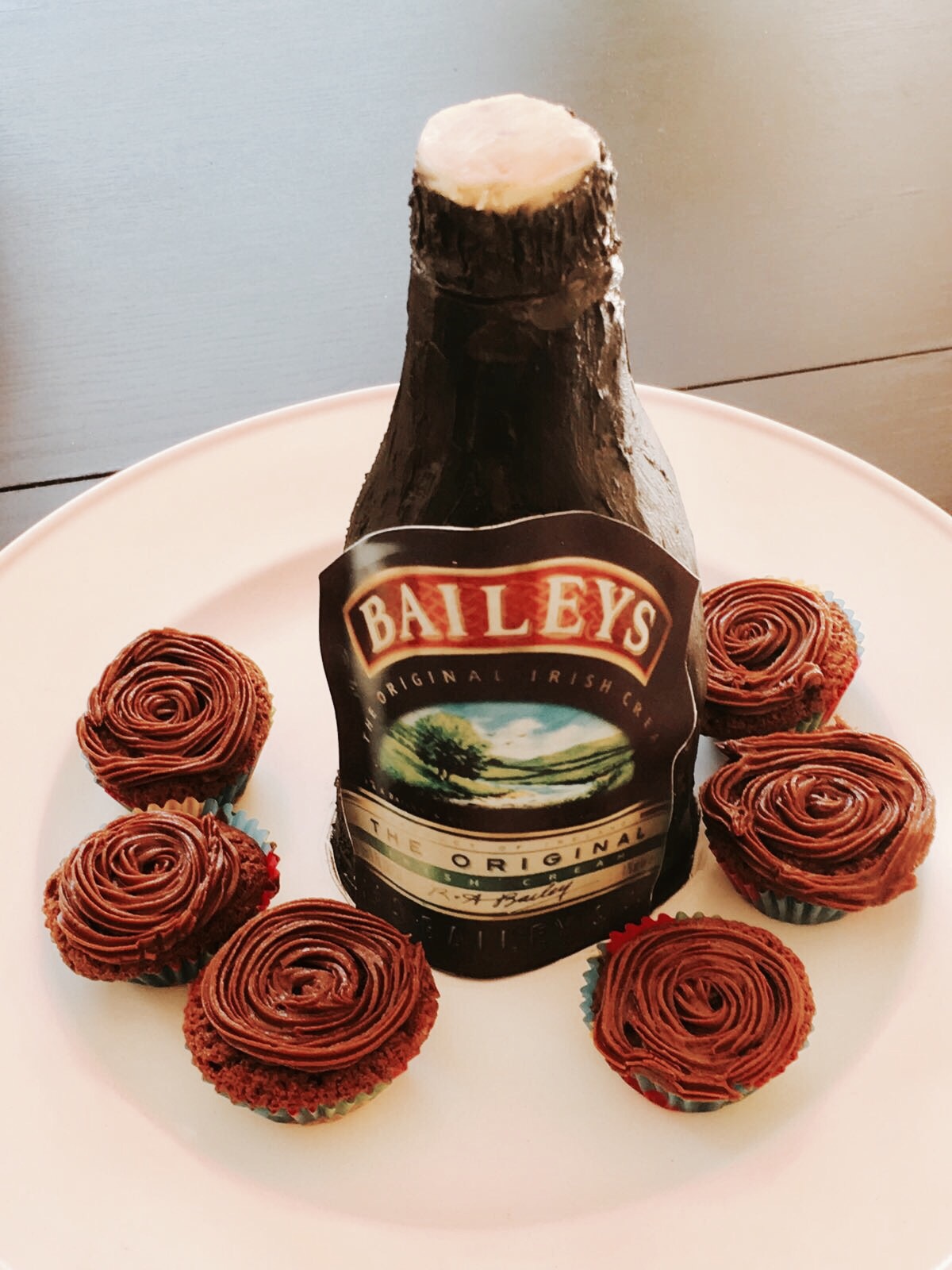 WhatsApp best place to throw in ideas. So I asked my best friends to tell me what kind of cake they wanted. They came out with chocolate…… Baileys …. cupcakes. So I did as they said but with a twist. I added the bottle of Bailey’s. At first I thought this is going to be hard to get the picture of the Bailey’s bottle to look real. But everything is possible with “edible icing pictures!!” And you can order it to your door online.